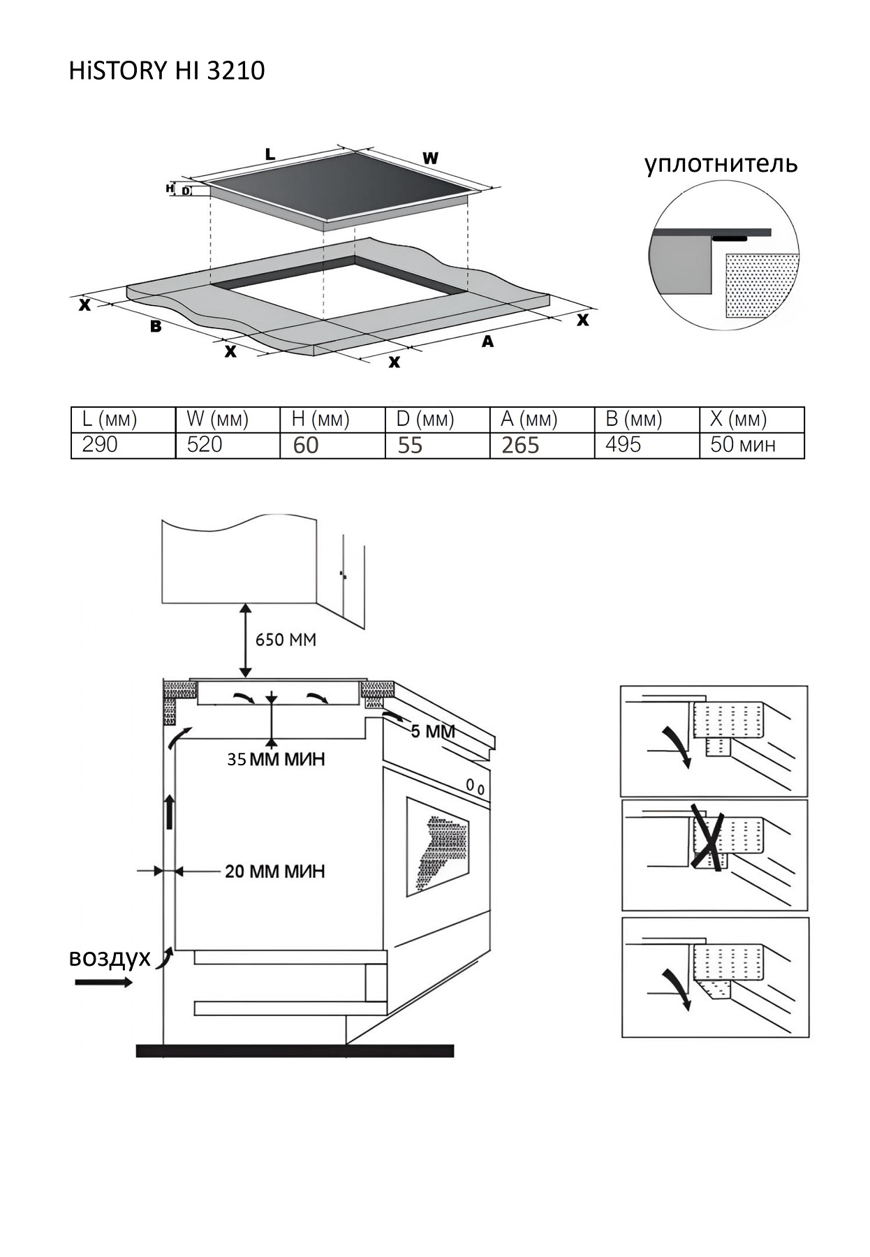 - От кромки столешницы: 50 мм