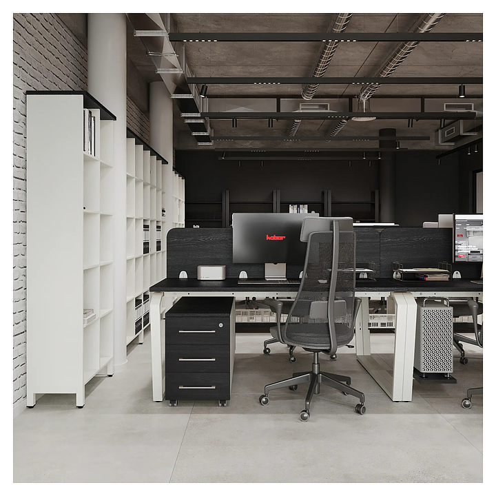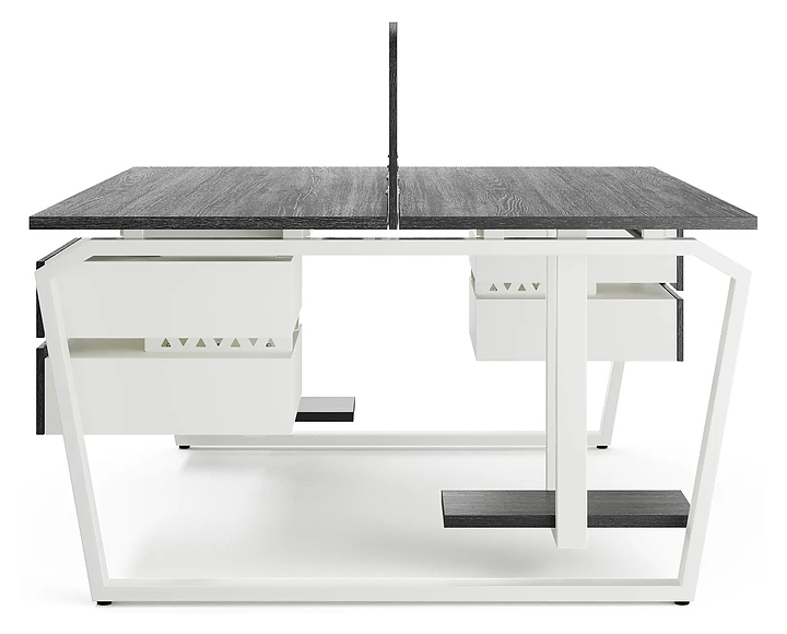 Офисный стол Кобор TB/2-140/140 white/glazed на 2 рабочих места используется в офисных помещениях и кабинетах руководителей. Модель оснащена опорами в форме обратной трапеции со скошенными верхними углами. Каркас и опоры выполнены из металла, выкрашенного в цвет белый муар (RAL9016), столешница – из ламинированной древесно-стружечной плиты (ЛДСП) цвета черный дуб (H3178 ST37). Дополнительные характеристики: