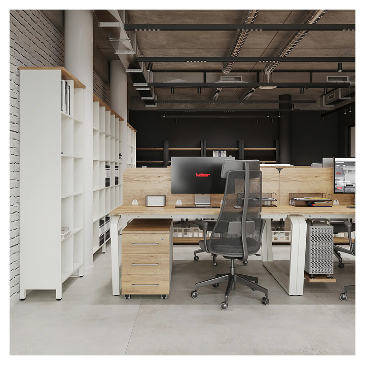 Офисный стол Кобор TB/2-140/120 white/natural на 2 рабочих места используется в офисных помещениях и кабинетах руководителей. Модель оснащена опорами в форме обратной трапеции со скошенными верхними углами. Каркас и опоры выполнены из металла, выкрашенного в цвет белый муар (RAL9016), столешница – из ламинированной древесно-стружечной плиты (ЛДСП) цвета натуральный дуб (H1180 ST37). Дополнительные характеристики: