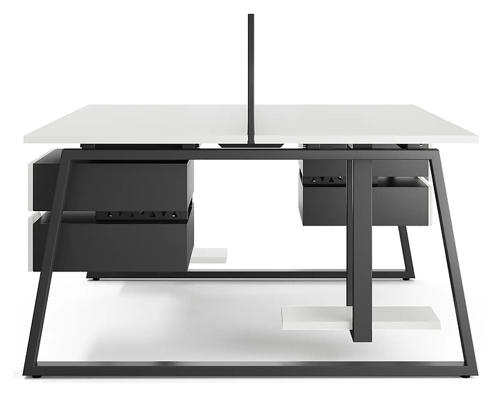 Офисный стол Кобор TR/2-140/120 black/premium на 2 рабочих места используется в офисных помещениях и кабинетах руководителей. Модель оснащена опорами в форме трапеции. Каркас и опоры выполнены из металла, выкрашенного в цвет черный муар (RAL9005), столешница – из ламинированной древесно-стружечной плиты (ЛДСП) цвета белый премиум (W1000 ST9). Дополнительные характеристики: