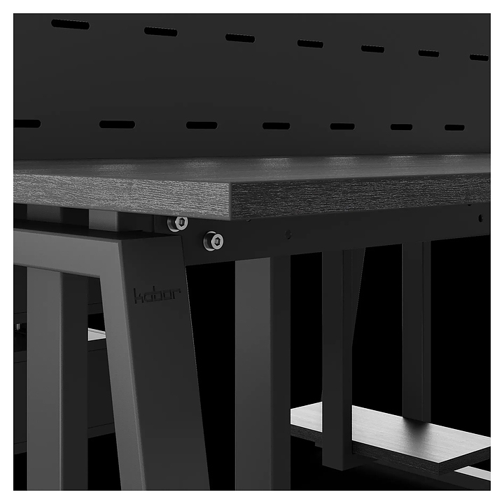 Офисный стол Кобор TR/2-160/120 black/glazed на 2 рабочих места используется в офисных помещениях и кабинетах руководителей. Модель оснащена опорами в форме трапеции. Каркас и опоры выполнены из металла, выкрашенного в цвет черный муар (RAL9005), столешница – из ламинированной древесно-стружечной плиты (ЛДСП) цвета черный дуб (H3178 ST37). Дополнительные характеристики: