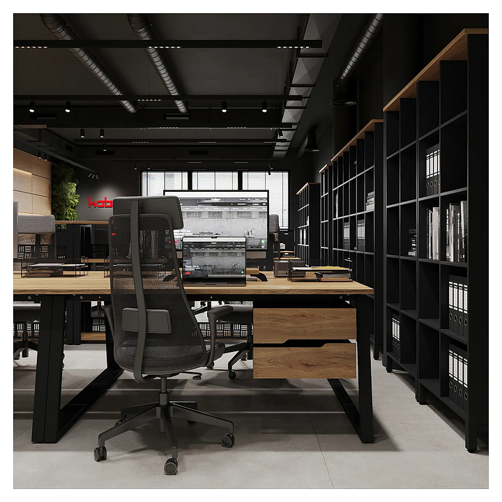 Офисный стол Кобор TR/2-180/120 black/natural на 2 рабочих места используется в офисных помещениях и кабинетах руководителей. Модель оснащена опорами в форме трапеции. Каркас и опоры выполнены из металла, выкрашенного в цвет черный муар (RAL9005), столешница – из ламинированной древесно-стружечной плиты (ЛДСП) цвета натуральный дуб (H1180 ST37). Дополнительные характеристики: