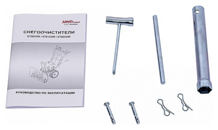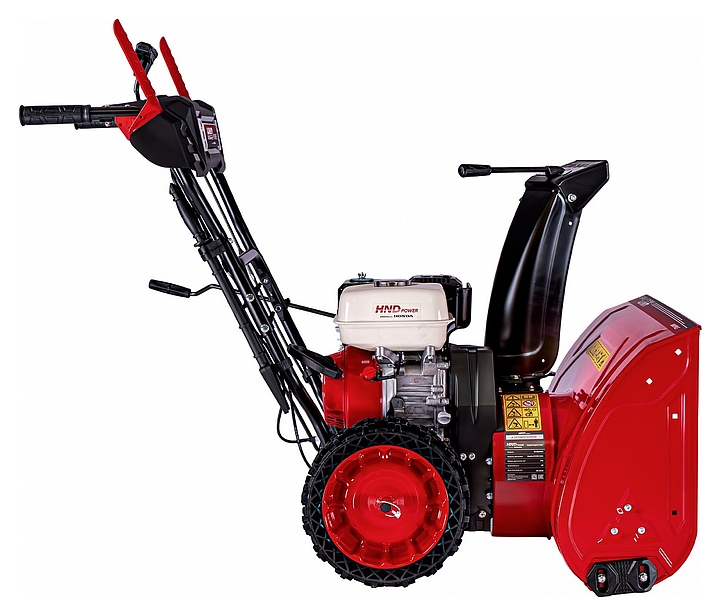 Бензиновый снегоуборщик HND ST 66 XWR предназначен для уборки снега на частных приусадебных участках и придомовых территориях. Модель оcнащена 4-тактным одноцилиндровым двигателем внутреннего сгорания Honda GP200, элементами управления, 2 колесами, ковшом с опорными полозьями и шнеком с ленточной крыльчаткой. Ведущие рукоятки и и кронштейн панели управления выполнены из металлического трубчатого профиля с рельефными полимерными накладками для удобного захвата, кожух двигателя, ковш, желоб и дефлектор выброса – из металла с антикоррозийным покрытием, скребок ковша – из стали, полозья и панель управления – из пластика.