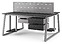 Офисный стол Кобор TR/2-120/160 aluminum/glazed на 2 рабочих места используется в офисных помещениях и кабинетах руководителей. Модель оснащена опорами в форме трапеции. Каркас и опоры выполнены из металла, выкрашенного в цвет алюминиевый металлик (RAL9006), столешница – из ламинированной древесно-стружечной плиты (ЛДСП) цвета черный дуб (H3178 ST37). Дополнительные характеристики: