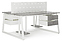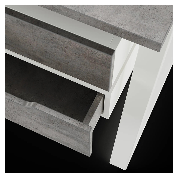 Офисный стол Кобор TR/2-100/120 white/chicago на 2 рабочих места используется в офисных помещениях и кабинетах руководителей. Модель оснащена опорами в форме трапеции. Каркас и опоры выполнены из металла, выкрашенного в цвет белый муар (RAL9016), столешница – из ламинированной древесно-стружечной плиты (ЛДСП) цвета бетон чикаго (F186 ST9). Дополнительные характеристики: