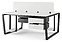 Офисный стол Кобор OTR/2-140/160 black/premium на 2 рабочих места используется в офисных помещениях и кабинетах руководителей. Модель оснащена опорами в форме обратной трапеции. Каркас и опоры выполнены из металла, выкрашенного в цвет черный муар (RAL9005), столешница – из ламинированной древесно-стружечной плиты (ЛДСП) цвета белый премиум (W1000 ST9). Дополнительные характеристики: