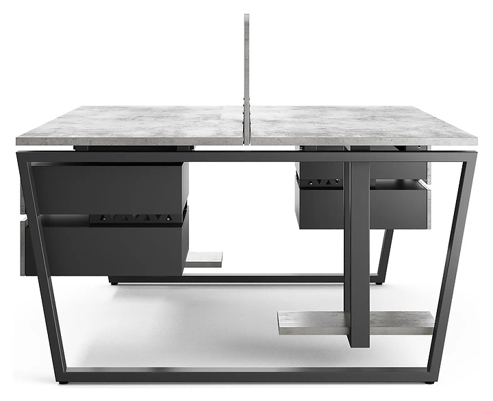 Офисный стол Кобор OTR/2-120/140 black/chicago на 2 рабочих места используется в офисных помещениях и кабинетах руководителей. Модель оснащена опорами в форме обратной трапеции. Каркас и опоры выполнены из металла, выкрашенного в цвет черный муар (RAL9005), столешница – из ламинированной древесно-стружечной плиты (ЛДСП) цвета бетон чикаго (F186 ST9). Дополнительные характеристики: