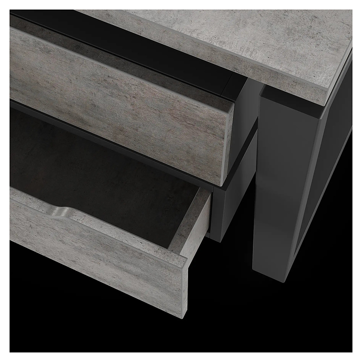 Офисный стол Кобор OTR/2-140/160 black/chicago на 2 рабочих места используется в офисных помещениях и кабинетах руководителей. Модель оснащена опорами в форме обратной трапеции. Каркас и опоры выполнены из металла, выкрашенного в цвет черный муар (RAL9005), столешница – из ламинированной древесно-стружечной плиты (ЛДСП) цвета бетон чикаго (F186 ST9). Дополнительные характеристики: