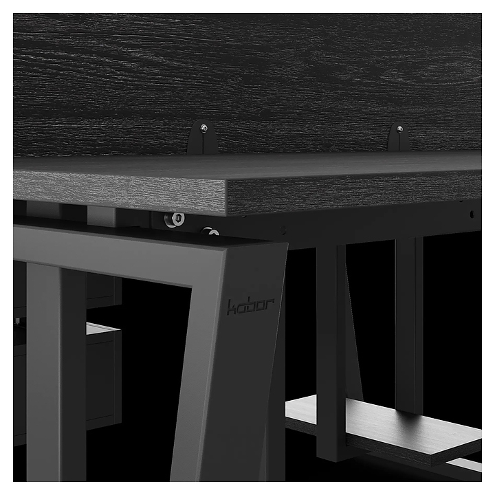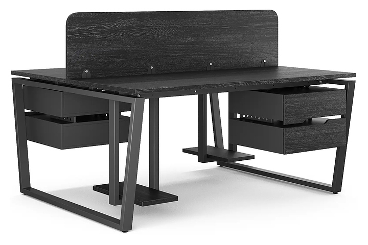 Офисный стол Кобор OTR/2-140/160 black/glazed на 2 рабочих места используется в офисных помещениях и кабинетах руководителей. Модель оснащена опорами в форме обратной трапеции. Каркас и опоры выполнены из металла, выкрашенного в цвет черный муар (RAL9005), столешница – из ламинированной древесно-стружечной плиты (ЛДСП) цвета черный дуб (H3178 ST37). Дополнительные характеристики:
