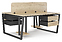 Офисный стол Кобор OTR/2-180/120 black/natural на 2 рабочих места используется в офисных помещениях и кабинетах руководителей. Модель оснащена опорами в форме обратной трапеции. Каркас и опоры выполнены из металла, выкрашенного в цвет черный муар (RAL9005), столешница – из ламинированной древесно-стружечной плиты (ЛДСП) цвета натуральный дуб (H1180 ST37). Дополнительные характеристики: