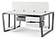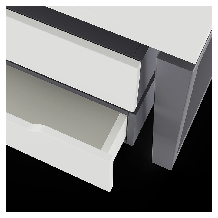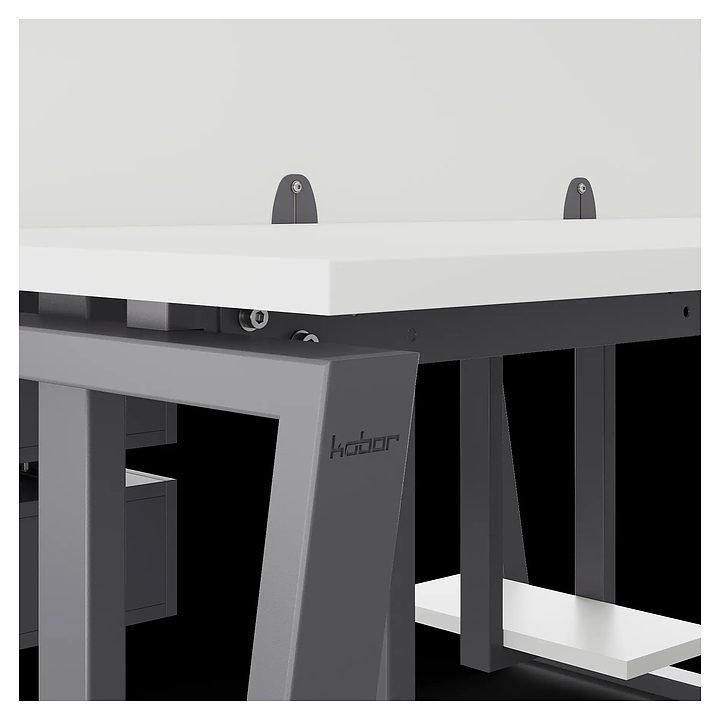 Офисный стол Кобор OTR/2-120/160 graphite/premium на 2 рабочих места используется в офисных помещениях и кабинетах руководителей. Модель оснащена опорами в форме обратной трапеции. Каркас и опоры выполнены из металла, выкрашенного в цвет графит муар (RAL7024), столешница – из ламинированной древесно-стружечной плиты (ЛДСП) цвета белый премиум (W1000 ST9). Дополнительные характеристики: