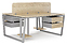 Офисный стол Кобор OTR/2-180/140 aluminum/natural на 2 рабочих места используется в офисных помещениях и кабинетах руководителей. Модель оснащена опорами в форме обратной трапеции. Каркас и опоры выполнены из металла, выкрашенного в цвет алюминиевый металлик (RAL9006), столешница – из ламинированной древесно-стружечной плиты (ЛДСП) цвета натуральный дуб (H1180 ST37). Дополнительные характеристики:
