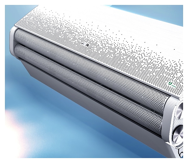 4D² обдув: объемный воздушный поток благодаря моторизованным жалюзи с регулировкой по 4 направлениям, инновационной перфорированной фронтальной панели с 8645 отверстиями и оптимизированной 2-сегментной конструкции перфорированных горизонтальных жалюзи