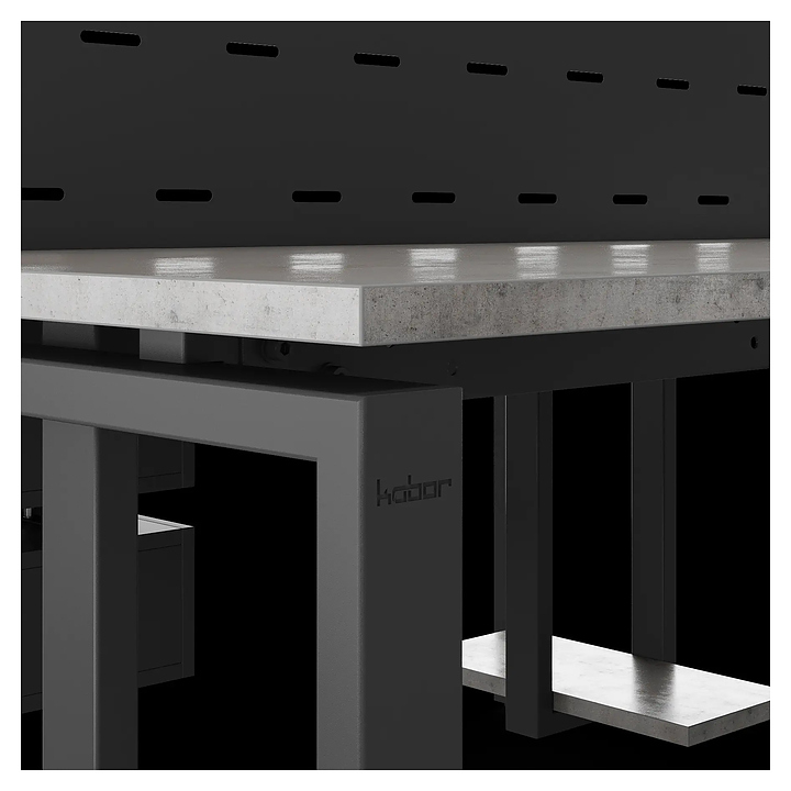 Офисный стол Кобор P/2-180/140 black/chicago на 2 рабочих места используется в офисных помещениях и кабинетах руководителей. Модель оснащена П-образными опорами. Каркас и опоры выполнены из металла, выкрашенного в цвет черный муар (RAL9005), столешница – из ламинированной древесно-стружечной плиты (ЛДСП) цвета бетон чикаго (F186 ST9). Дополнительные характеристики: