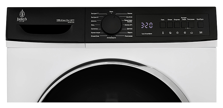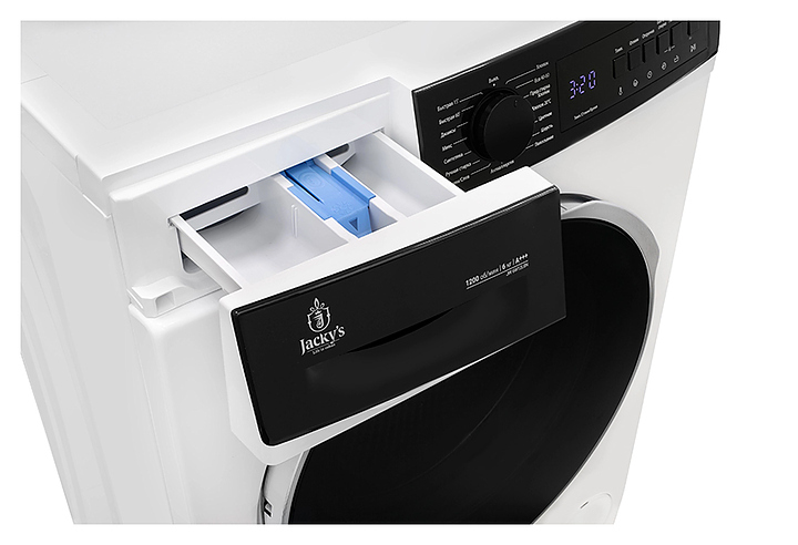 Стиральная машина Jacky's JW 6W12L0N используется в квартирах и частных домах для стирки, полоскания и отжима белья, ткани и одежды. Модель оснащена фронтальной загрузкой и сенсорной LED-панелью управления. Дверь увеличенного диаметра с покрытием PC cover упрощает загрузку в барабан объемных вещей и остается прохладной даже при стирке с использованием высоких температур. 15 автоматических режимов:
