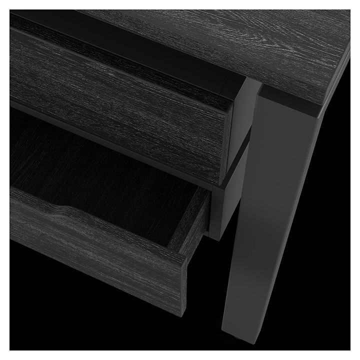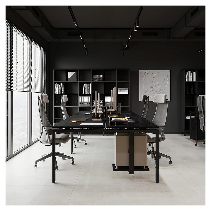 Офисный стол Кобор P/2-160/120 black/glazed на 2 рабочих места используется в офисных помещениях и кабинетах руководителей. Модель оснащена П-образными опорами. Каркас и опоры выполнены из металла, выкрашенного в цвет черный муар (RAL9005), столешница – из ламинированной древесно-стружечной плиты (ЛДСП) цвета черный дуб (H3178 ST37). Дополнительные характеристики: