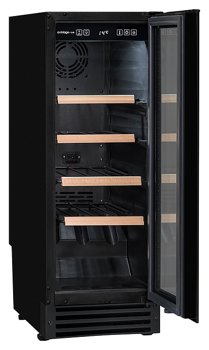 Винный шкаф Climadiff Avintage AVU23TB1 предназначен для хранения при оптимальных условиях и демонстрации бутилированного вина различных сортов в барах, ресторанах, специализированных магазинах, складских помещениях, гостиницах, а также домашних условиях. Модель оснащена монотемпературной холодильной камерой, правосторонней перенавешиваемой распашной дверью на скрытых петлях, обзорным остеклением, кабелем питания с вилкой, расположенной внутри камеры панелью управления с сенсорными клавишами и светодиодным дисплеем с белой подсветкой индикации. Корпус и рукоятка выполнены из металла с антикоррозийным покрытием черного цвета, внутренняя облицовка камеры черного цвета, полки – из стали с фронтом из массива буковой древесины. В комплект поставки входят 4 съемные решетчатые полки для размещения бутылок, крепеж для рукоятки, инструкция по эксплуатации, гарантийный талон и заводская упаковка. Особенности: