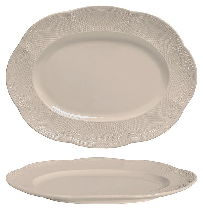 Блюдо Noble Aristocrat Peach Tea 313012-PEACH используется для подачи различных блюд в кафе, ресторанах, на других предприятиях общественного питания и в домашних условиях. Модель овально ориентированной формы оснащена широким бортом с декоративным ажурным рельефом на лицевой стороне и волнистой кромкой. Изделие выполнено из фарфора с поверхностью кремового оттенка. Особенности: