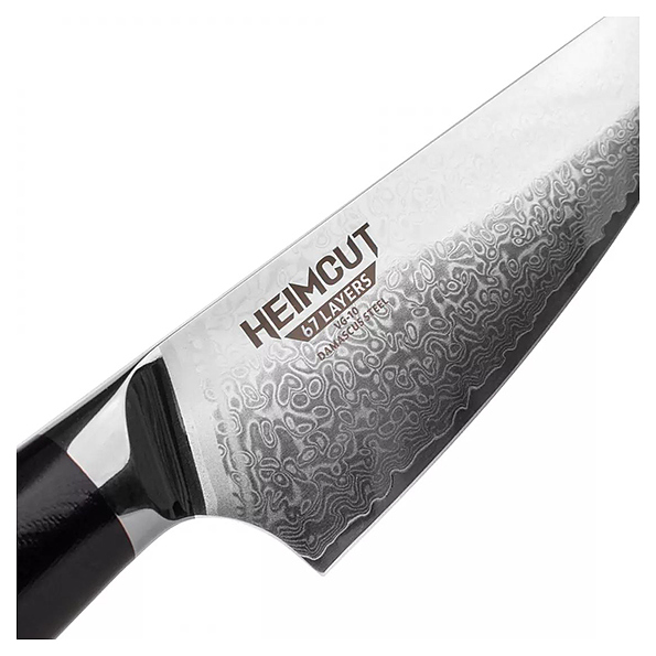 Профессиональный набор ножей HEIMCUT Triangle Damascus HC/ENERGY-3-SET предназначен для работы с мясом, рыбой, овощами и фруктами. Рукоять изготовлена из стеклотекстолита G-10, который отличается износостойкостью, прочностью и твердостью. Клинок выполнен из стали VG-10 в обкладках из дамаска, устойчивой к коррозии, долговечной, прочной, пластичной, длительно сохраняющей остроту режущей кромки и первоначальный внешний вид во время всего периода эксплуатации. Комплектация: