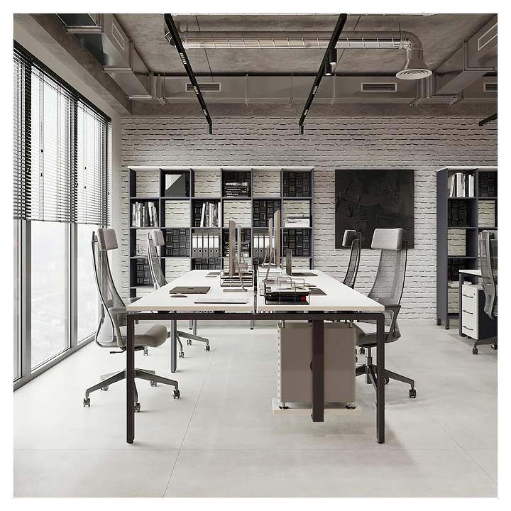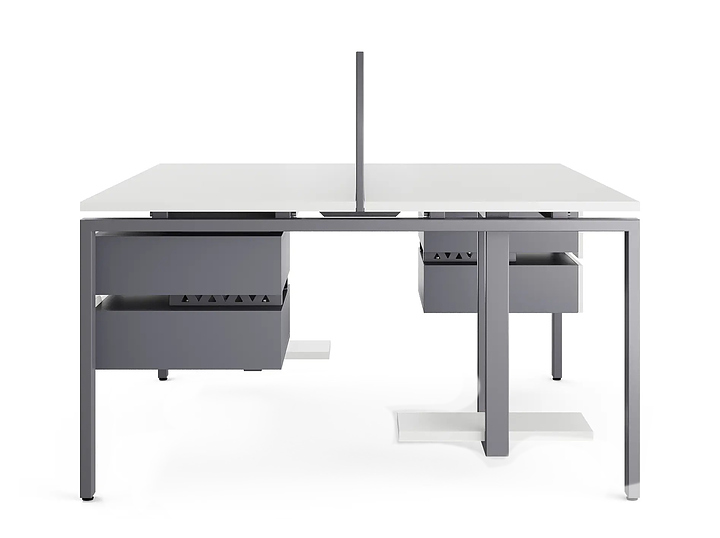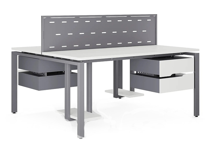 Офисный стол Кобор P/2-180/120 graphite/premium на 2 рабочих места используется в офисных помещениях и кабинетах руководителей. Модель оснащена П-образными опорами. Каркас и опоры выполнены из металла, выкрашенного в цвет графит муар (RAL7024), столешница – из ламинированной древесно-стружечной плиты (ЛДСП) цвета белый премиум (W1000 ST9). Дополнительные характеристики: