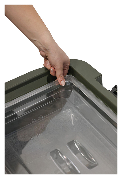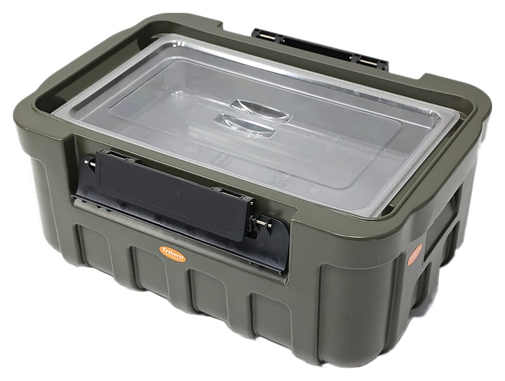 Термоконтейнер Tribeca 635х435х300 мм используется службами доставки предприятий общественного питания и пищевой промышленности, а также в быту, во время туристических походов, пикника, рыбалки или дорожных путешествий для хранения и транспортировки приготовленных блюд, льда, свежих фруктов и других пищевых продуктов в автономных изотермических условиях в гастроемкостях или другой подходящей таре. Модель прямоугольно ориентированной формы оснащена съемной плотно прилегающей крышкой. Корпус выполнен из высококачественного полиэтилена низкой плотности (LLDPE) цвета хаки, застежки – из прочного нейлона (PA6), термоизоляция – из экологичного пенополиуретана высокой плотности. Гастроемкости не входят в комплект поставки и приобретаются отдельно. Особенности: