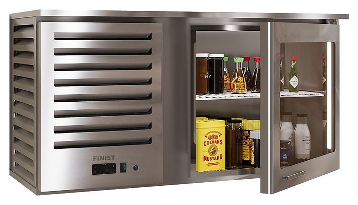 Холодильная полка Finist НПХ-1 предназначена для кратковременного хранения и предпродажной демонстрации охлажденных пищевых продуктов и напитков на предприятиях общественного питания и торговли. Модель оснащена встроенным компрессорным холодильным агрегатом с боковым расположением и холодильной камерой с распашной дверью. Выкладка осуществляется на дно и съемную решетчатую полку. Корпус выполнен из нержавеющей стали. Особенности: