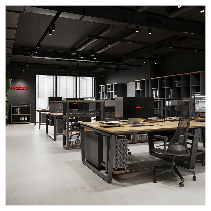 Офисный стол Кобор P/2-160/120 aluminum/natural используется в офисных помещениях и кабинетах руководителей. Модель оснащена П-образными опорами. Каркас выполнен из металла, выкрашенного в цвет алюминиевый металлик (RAL9006), столешница – из ламинированной древесно-стружечной плиты (ЛДСП) цвета натуральный дуб (H1180 ST37). Дополнительные характеристики: