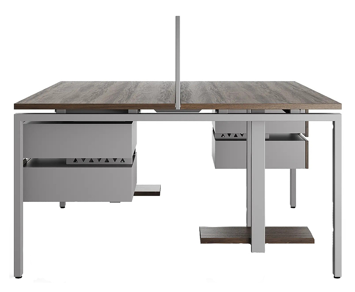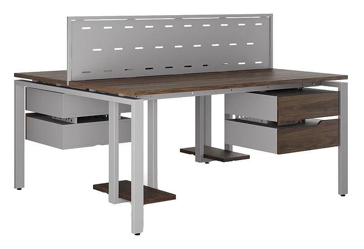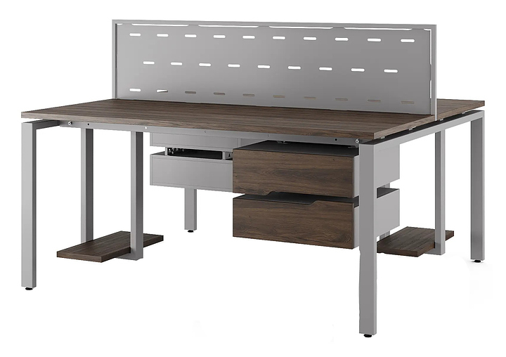 Офисный стол Кобор P/2-140/120 aluminum/charlston используется в офисных помещениях и кабинетах руководителей. Модель оснащена П-образными опорами. Каркас выполнен из металла, выкрашенного в цвет алюминиевый металлик (RAL9006), столешница – из ламинированной древесно-стружечной плиты (ЛДСП) цвета дуб чарльстон (H3154 ST36). Дополнительные характеристики: