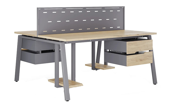 Офисный стол Кобор Стол A/2-180/120 graphite/natural используется в офисных помещениях и кабинетах руководителей. Модель оснащена А-образными опорами. Каркас выполнен из металла, выкрашенного в цвет графит муар (RAL7024), столешница – из ламинированной древесно-стружечной плиты (ЛДСП) цвета дуб натуральный (H1180 ST37). Дополнительные характеристики: