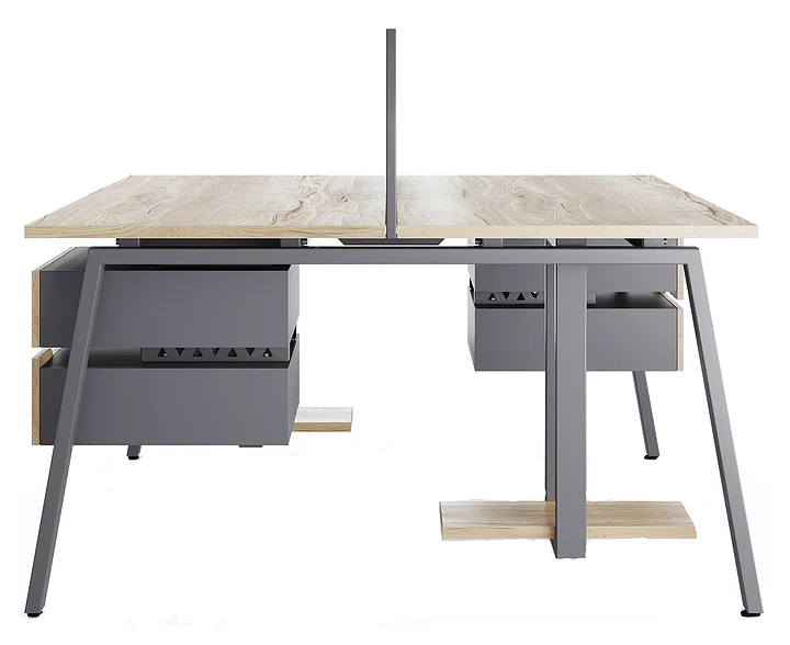 Офисный стол Кобор Стол A/2-160/160 graphite/natural используется в офисных помещениях и кабинетах руководителей. Модель оснащена А-образными опорами. Каркас выполнен из металла, выкрашенного в цвет графит муар (RAL7024), столешница – из ламинированной древесно-стружечной плиты (ЛДСП) цвета дуб натуральный (H1180 ST37). Дополнительные характеристики: