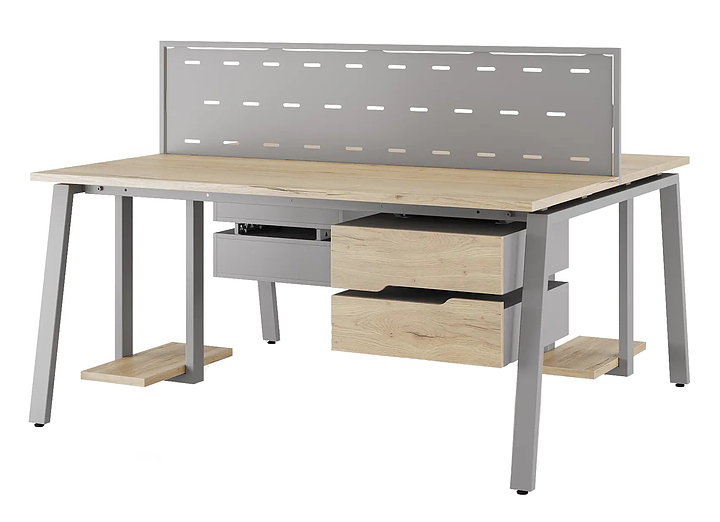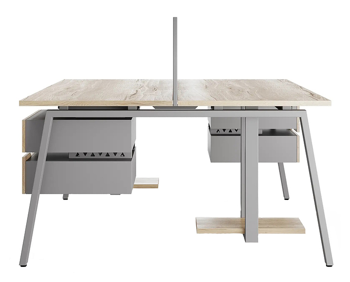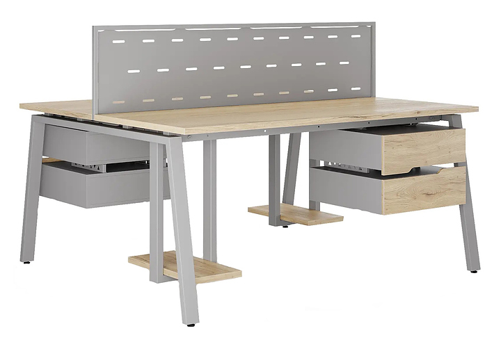 Офисный стол Кобор A/2-120/160 aluminum/natural используется в офисных помещениях и кабинетах руководителей. Модель оснащена А-образными опорами. Каркас выполнен из металла, выкрашенного в цвет алюминиевый металлик (RAL9006), столешница – из ламинированной древесно-стружечной плиты (ЛДСП) цвета дуб натуральный (H1180 ST37). Дополнительные характеристики: