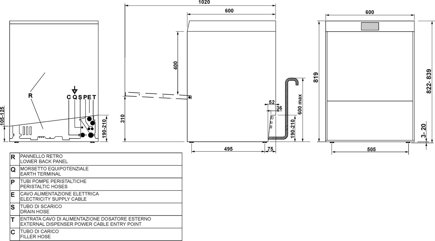 Посудомоечная машина с фронтальной загрузкой SMEG SPD525 серии Pura используется на предприятиях общественного питания и торговли для мойки столовых приборов, тарелок, стаканов, чашек и другой посуды. Модель оснащена электронной панелью управления и регулируемыми по высоте ножками. Цельнотянутый моечный бак выполнен из нержавеющей стали AISI 304, раздельные моющие и ополаскивающие рукава и фильтр моечного бака - из нержавеющей стали. Комплектация: