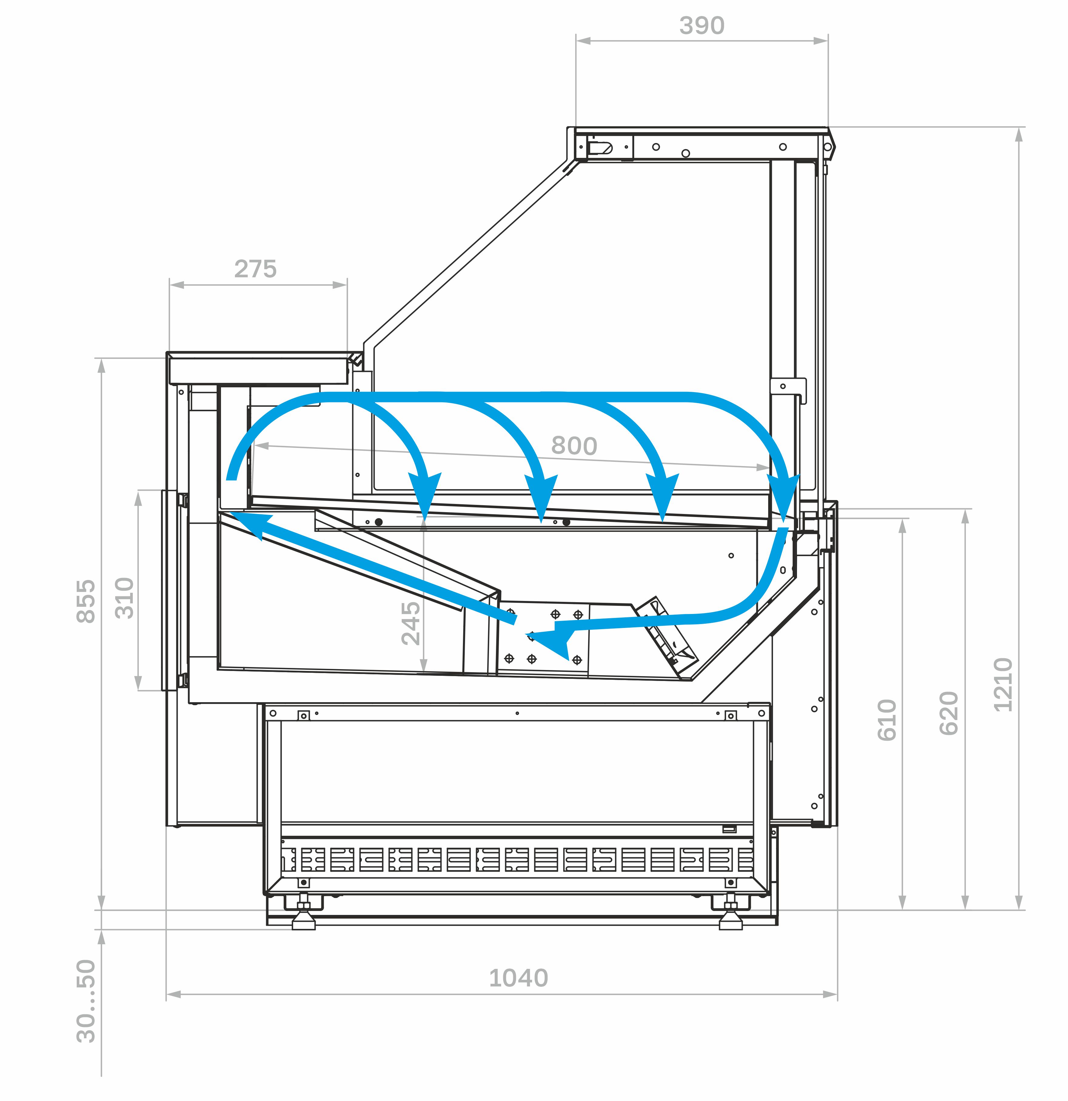 Витрина холодильная Carboma Bavaria 4 GC110 VM 2,0-1 версия 2.0 RAL 9006-9005 (без боковин)