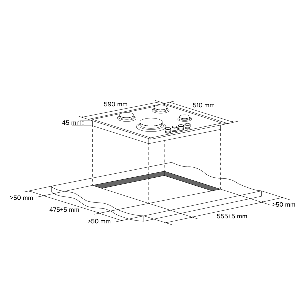Газовая варочная панель Libhof GH-604 предназначена для приготовления большого ассортимента блюд в домашних условиях. Модель оснащена 4 высококачественными конфорками различной мощности, 2 опорными решетками, кабелем питания и расположенной в правой части фронта механической панелью управления с 4 поворотными переключателями. Корпус выполнен из стали, рабочая поверхность – из устойчивого к механическим повреждениям закаленного стекла черного цвета, решетки – из чугуна, конфорки – из алюминия, крышки конфорок – из углеродистой стали, ручки переключатей цилиндрической формы – из термостойкого материала с серебристой поверхностью. В комплект поставки входят монтажные скобы с фиксирующими винтами, уплотнительная лента, колено с 2 прокладками для подключения газа, инструкция по эксплуатации, гарантийный талон и заводская упаковка. Особенности: