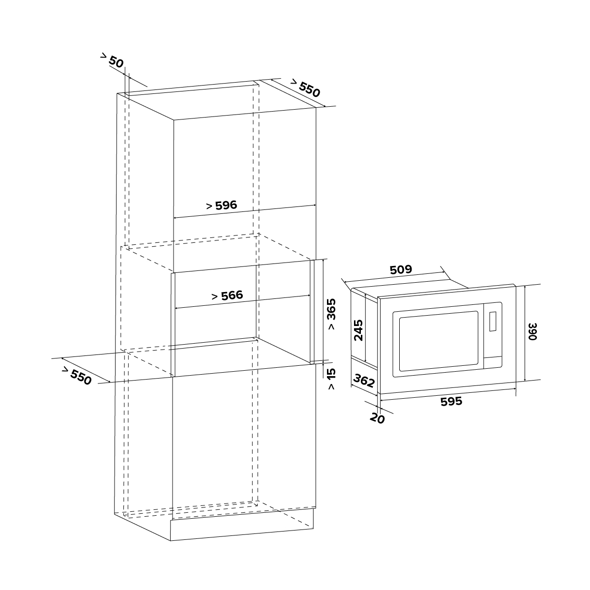 Встраиваемая микроволновая печь Libhof MWB-5425 black-silver предназначена для приготовления пищи, подогрева готовых блюд и ингридиентов, а также размораживания полуфабрикатов в гостиницах, офисах и домашних условиях. Модель оснащена камерой с кварцевым грилем, левосторонней распашной дрерью со смотровым окном, кабелем питания, расположенной с правой стороны фронта панелью управления с сенсорными функциональными клавишами и цифровым дисплеем с белой подсветкой индикации. Корпус выполнен из стали, фасадные панели черного цвета фронтальным остеклением без винтового крепежа и декоративными серебристыми металлическими вставками сверху и снизу, внутренняя облицовка камеры – из нержавеющей стали, тарелка – из прочного термостойкого боросиликатного стекла. В комплект поставки входят поворотный стол (опорное кольцо и тарелка), высокая решетка для гриля, монтажный комплект, инструкция по эксплуатации, гарантийный талон и заводская упаковка. Особенности: