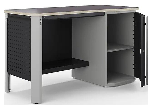 Верстак Кобор Expert MW.1R-100/70 предназначен для выполнения сборочных, ремонтных, слесарных, монтажных и других видов работ на производстве, в сервисных центрах, мастерских, гаражах и в образовательных учреждениях для практических занятий. Встроенная тумба с дверцей гарантирует комфортное использования и позволяет хранить необходимые инструменты и материалы на рабочем месте. Рама обладает высокой устойчивостью благодаря опорным элементам, перемычкам и боковой перфопанели. Столешница выполнена из ламинированной фанеры, отличающейся прочностью и долговечностью. Особенности: