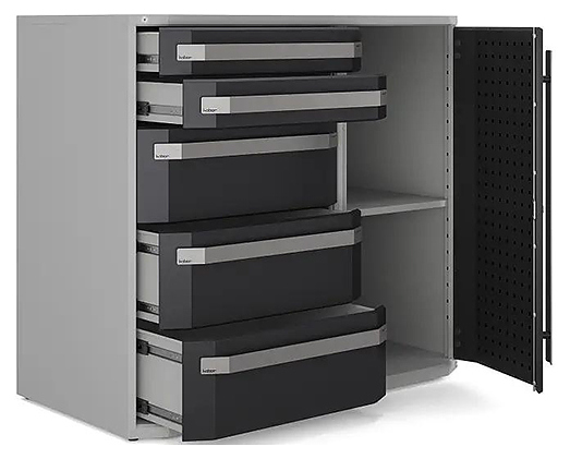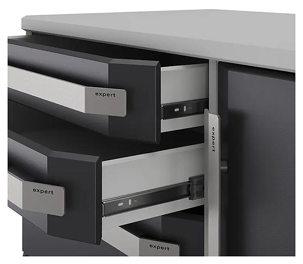 Тумба Кобор Expert MTF/4-90/64 2S.23B предназначена для выполнения сборочных, ремонтных, слесарных, монтажных и других видов работ на производстве, в сервисных центрах, мастерских, гаражах и в образовательных учреждениях для практических занятий. Модель оснащена 2 полками и 5 выдвижными ящиками, которые гарантируют комфортное использование и позволяют хранить необходимые инструменты и материалы на рабочем месте. Столешница выполнена из ламинированной фанеры, отличающейся прочностью и долговечностью. Особенности: