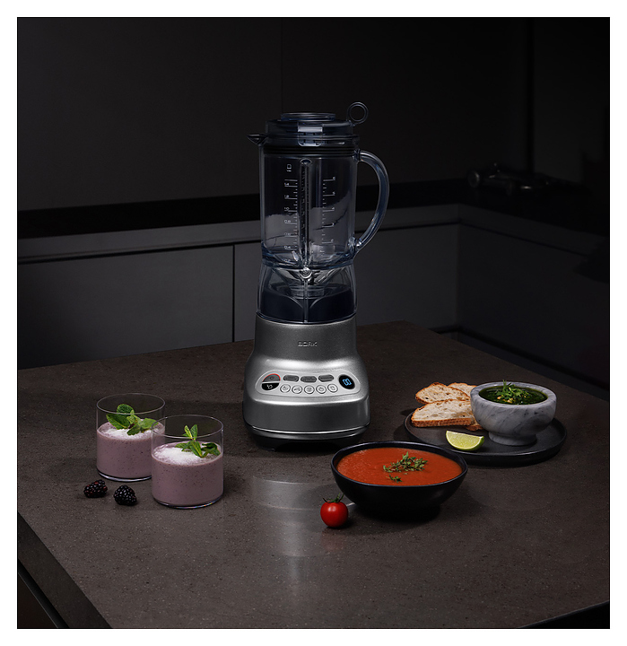 Блендер Bork B705 используется для приготовления и взбивания соусов, муссов, фруктовых и молочных коктейлей, а также для перемешивания и измельчения фруктов и овощей, приготовления густого пюре, ореховой пасты и мороженого в домашних условиях. Модель оснащена защитой от перегрузки, подсветкой панели, отсеком для кабеля, таймером и мерным стаканом. Литой корпус выполнен из нержавеющей стали, стакан - из полимера EASTMAN TRITAN. В комплект поставки входят верхняя крышка/мерный стакан и основная крышка. Особенности:
