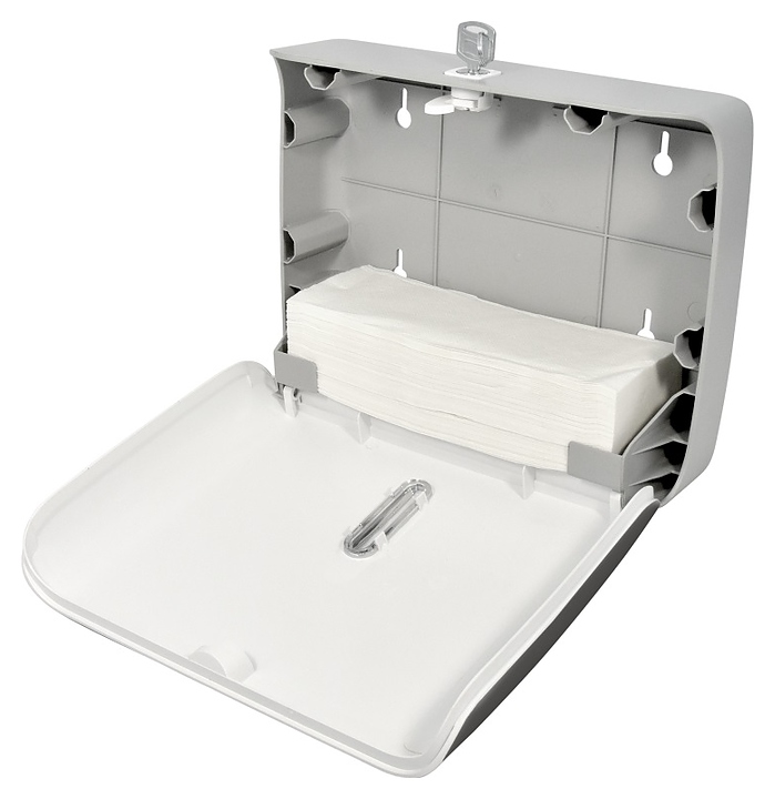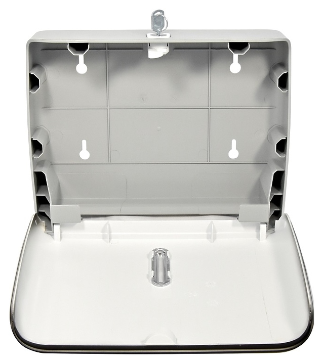 Диспенсер Puff 5145Bl предназначен для размещения и дозированной подачи бумажных полотенец в общественных санитарных узлах гостиниц, предприятий общественного питания, медицинских учреждений и других мест массового пребывания. Модель оснащена запираемой на ключ откидной крышкой. Корпус прямоугольно ориентированной формы изготовлен из ударопрочного АБС-пластика, крышка с черной матовой поверхностью, упаковка – картонная коробка. Комплектация: