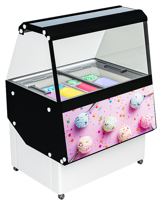 Витрина FRISMO Scooping-6 предназначена для демонстрации, охлаждения и долгосрочного хранения мягкого мороженого на предприятиях общественного питания и торговли. Модель оснащена LED-подсветкой внутренного объема и лайтбокса, цифровым контроллером, 3 корзинами и 4 поворотными колесами. Надстройка выполнена из закаленного стекла, ложементы - из нержавеющей стали. В комплект поставки входит скребок для чистки. Особенности: