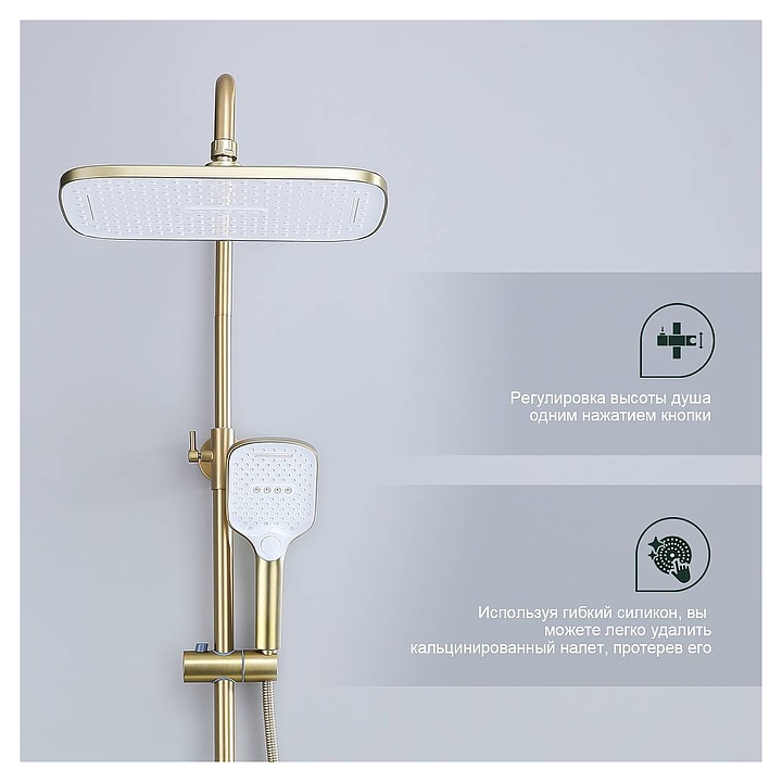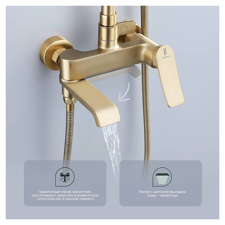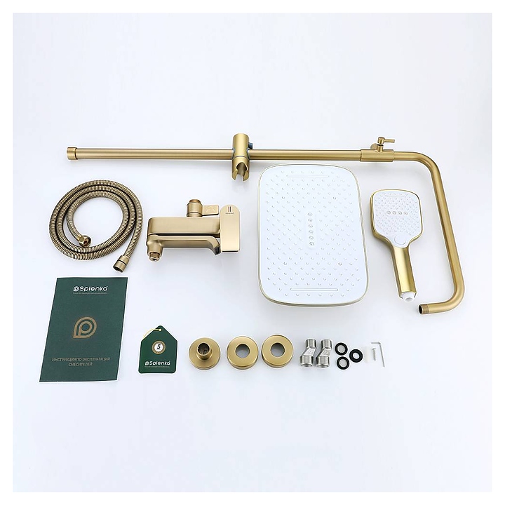 Душевая система Splenka S31.24.03 предназначена для подачи горячей и холодной воды в ванных помещениях. Модель оснащена прямоугольными верхним душем и ручной лейкой. Керамический картридж обеспечивает плавный ход рычага смесителя, контроль и точность при выборе напора и температуры воды. Аэратор создает мягкую струю без брызг. Изделие выполнено из латуни, шланг - из металла. В комплект поставки входят верхний душ, душевая штанга с держателем лейки, ручной душ, смеситель и шланг. Особенности: