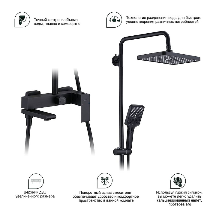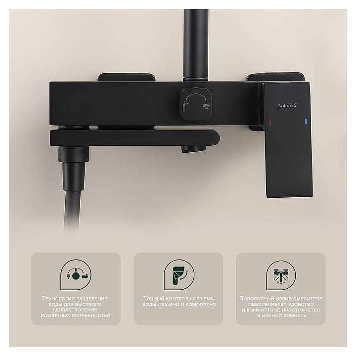 Душевая система Splenka S224.24.06 предназначена для подачи горячей и холодной воды в ванных помещениях. Модель оснащена прямоугольными верхним душем и ручной лейкой. Керамический картридж обеспечивает плавный ход рычага смесителя, контроль и точность при выборе напора и температуры воды. Аэратор создает мягкую струю без брызг. Изделие выполнено из нержавеющей стали, шланг - из ПВХ. В комплект поставки входят верхний душ, душевая штанга с держателем лейки, ручной душ, смеситель и шланг. Особенности: