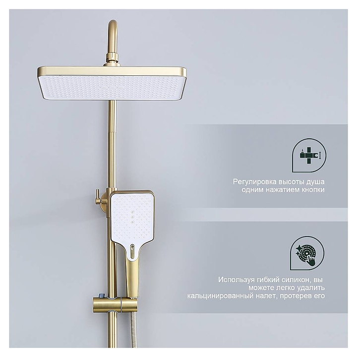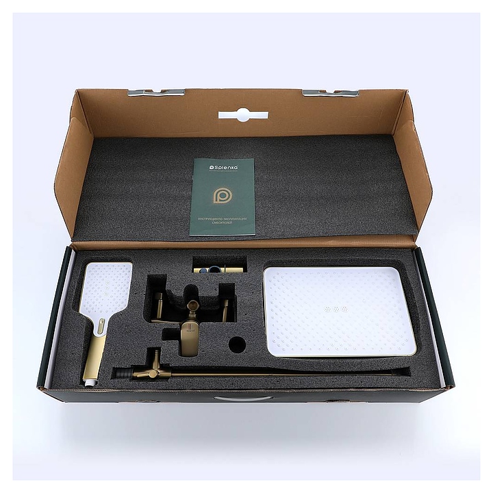 Душевая система Splenka S30.24.03 предназначена для подачи горячей и холодной воды в ванных помещениях. Модель оснащена прямоугольными верхним душем и ручной лейкой. Керамический картридж обеспечивает плавный ход рычага смесителя, контроль и точность при выборе напора и температуры воды. Аэратор создает мягкую струю без брызг. Изделие выполнено из латуни, лейки - из прочного ABS-пластика, шланг - из металла. В комплект поставки входят верхний душ, душевая штанга с держателем лейки, ручной душ, смеситель и шланг. Особенности: