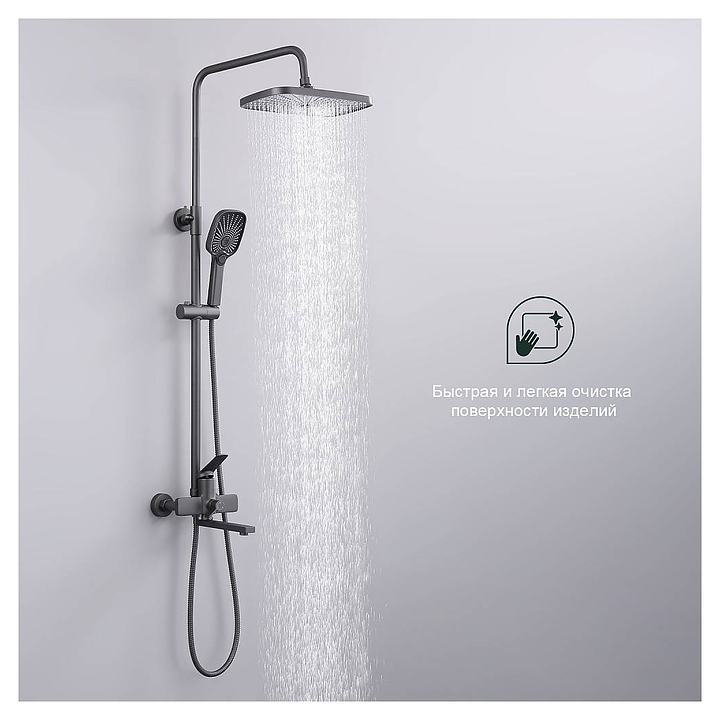 Душевая система Splenka S40.24.07 предназначена для подачи горячей и холодной воды в ванных помещениях. Модель оснащена прямоугольными верхним душем и ручной лейкой. Керамический картридж обеспечивает плавный ход рычага смесителя, контроль и точность при выборе напора и температуры воды. Аэратор создает мягкую струю без брызг. Изделие выполнено из латуни, шланг - из ПВХ. В комплект поставки входят верхний душ, душевая штанга с держателем лейки, ручной душ, смеситель и шланг. Особенности: