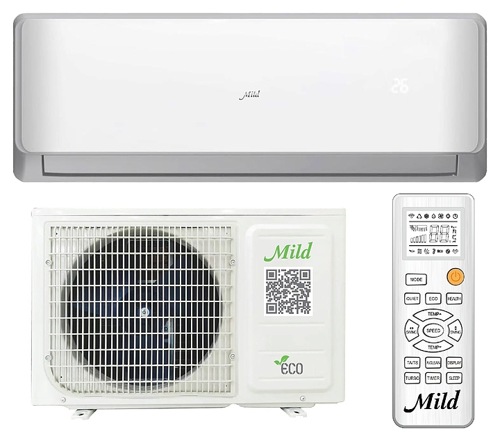 Настенная сплит-система Mild MLI-18MB / MLO-18MB используется для создания максимально кофмортных условий микроклимата в жилых, офисных и коммерческих помещениях. Модель состоит из внутреннего блока MLI-18MB и наружного блока MLO-18MB. Наружный блок оснащен изогнутым трубчато-пластинчатым теплообменником, 3-лопастным вентилятором, защитными решеткой и крышкой для сервисных вентилей, внутренний блок – диаметральным вентилятором, воздухозаборной решеткой, откидной лицевой панелью, подвижными горизонтальной заслонкой и вертикальными жалюзи, электронным блоком управления и светодиодным дисплеем скрытого типа с проецируемой на фронтальную панель индикацией, пульт – информативным жидкокристаллическим дисплеем и кнопочной клавиатурой. Облицовка внутреннего блока выполнена из ударопрочного АБС-пластика с поверхностью белого цвета, корпус пульта – из ударопрочного белого пластика, крыльчатка вентиляторов – из АС-пластика, корпус наружного блока – из стали с антикоррозийным покрытием белого цвета.