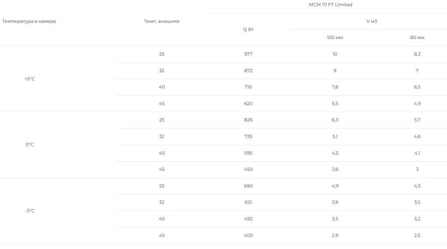 Сплит-системы на объем холодильных камер подобраны при обязательном соблюдении следующих условий эксплуатации: