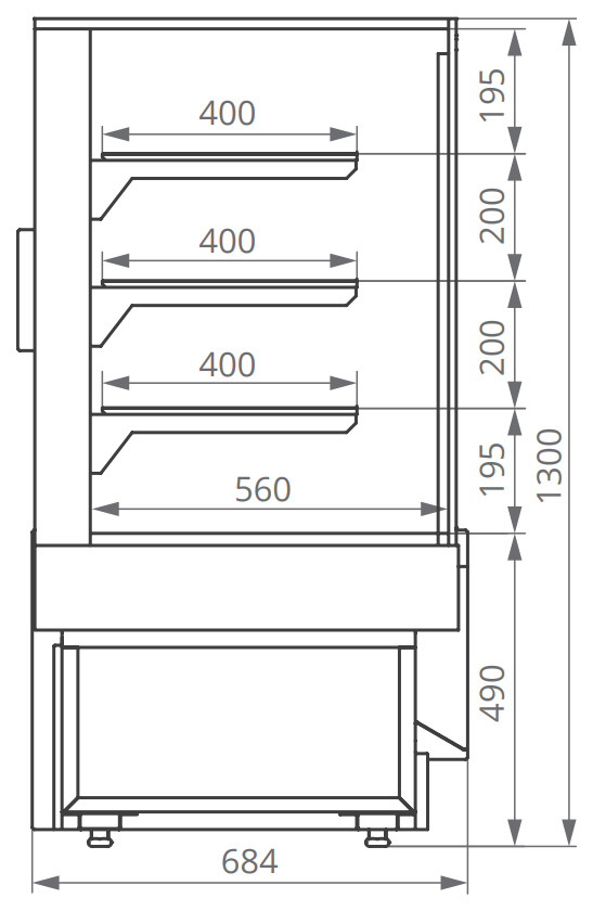 Кондитерская витрина Chilz VETE II KUB LUX 130 предназначена для демонстрации, охлаждения и краткосрочного хранения кондитерских изделий, закусок и десертов на предприятиях общественного питания и торговли. Модель оснащена 3 полками, нижней зоной выкладки и электронным контроллером. Особенности: