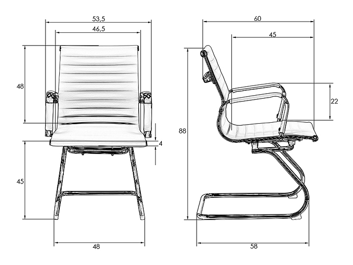 Офисное кресло DOBRIN 102N-LMR CODY для комфортного размещения посетителей в офисах и залах ожидания различных учреждений. Модель оснащена жестким квадратным сиденьем, основанием в виде полозьев, спинкой и подлокотниками. Основание выполнено из металла, обивка - из экокожи. Особенности: