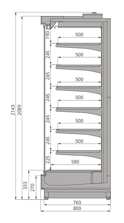Горка холодильная Brandford Tesey Slim ESC 2080 190 (без боковин)