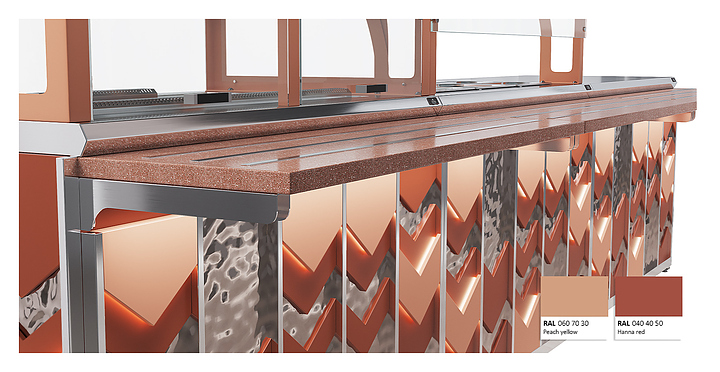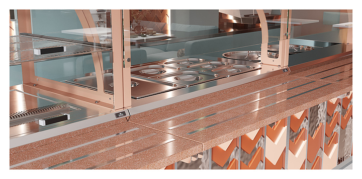 Прилавок холодильный Luxstahl ПХК (С)-1200 Premium Vector (Вектор) используется в составе линии раздачи Vector на предприятиях общественного питания и торговли для выкладки продуктов и напитков. Модель оснащена верхней полкой из стекла 6 мм и подсветкой (две светодиодные лампы). Каркас выполнен из нержавеющей стали AISI 430 толщиной 1 мм, фасад - из окрашенного МДФ, направляющая для подносов - из профильной трубы 25х25 мм. Особенности:
